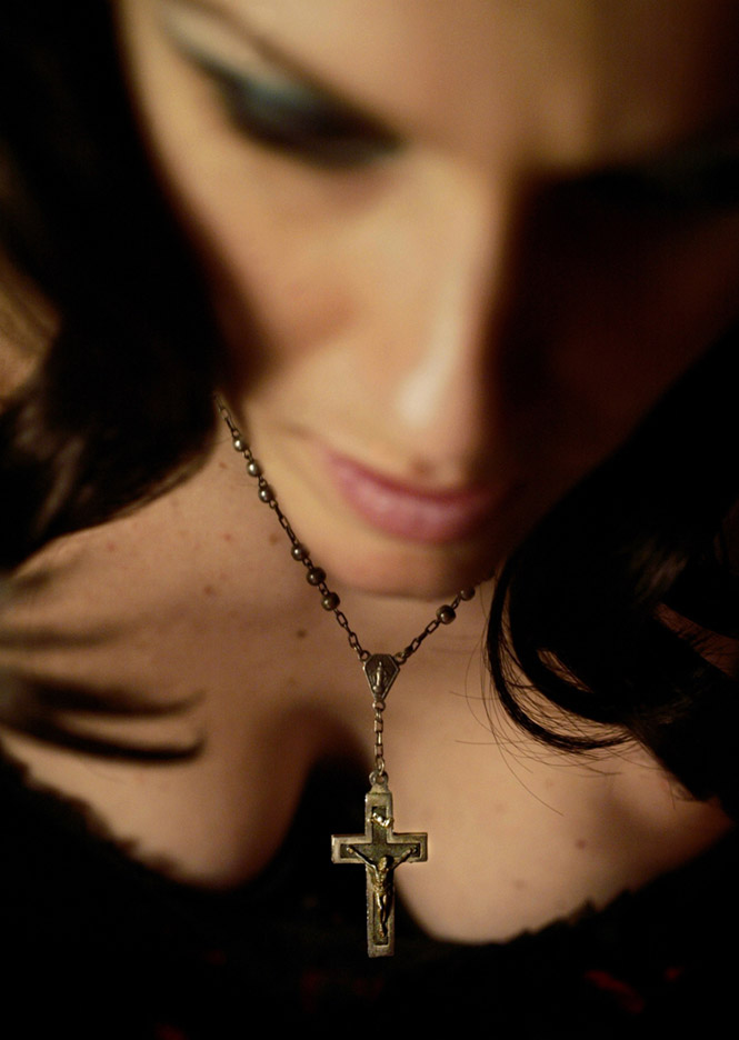Burlesque dancer "Lula Licious" (aka Rachel Kallas) wears a modified cruxifix necklace reflecting her spirituality, and the moral issues she wrestles with as a dancer. "When you grow up religious, or you grow up thinking that you're supposed to be a certain way, and all of a sudden you have some monster in you like Lula Licious that is trying to come out of you, it's kind of scary because you feel like you're demon possessed," she says.